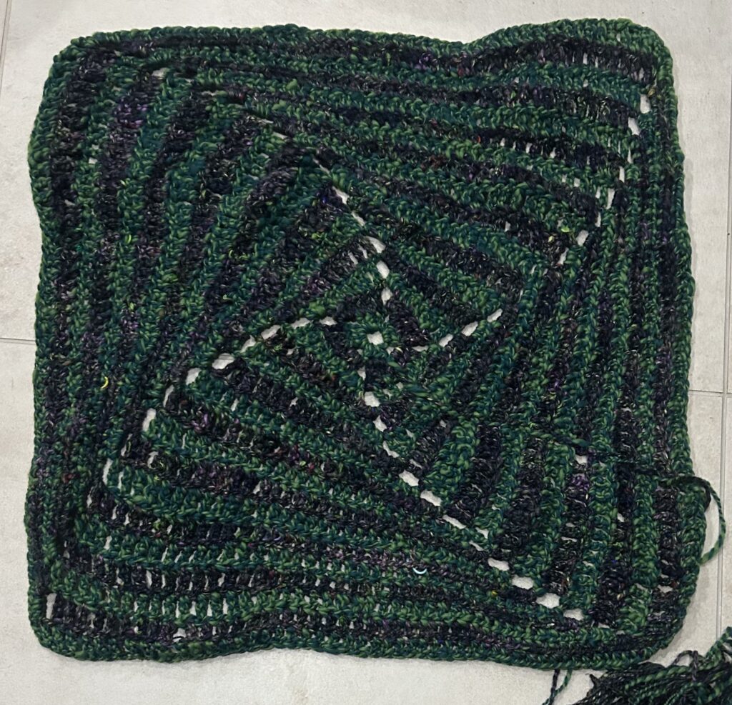 Fingers crossed I now have enough yarn to finish making a sleeveless top with a tulip hem: