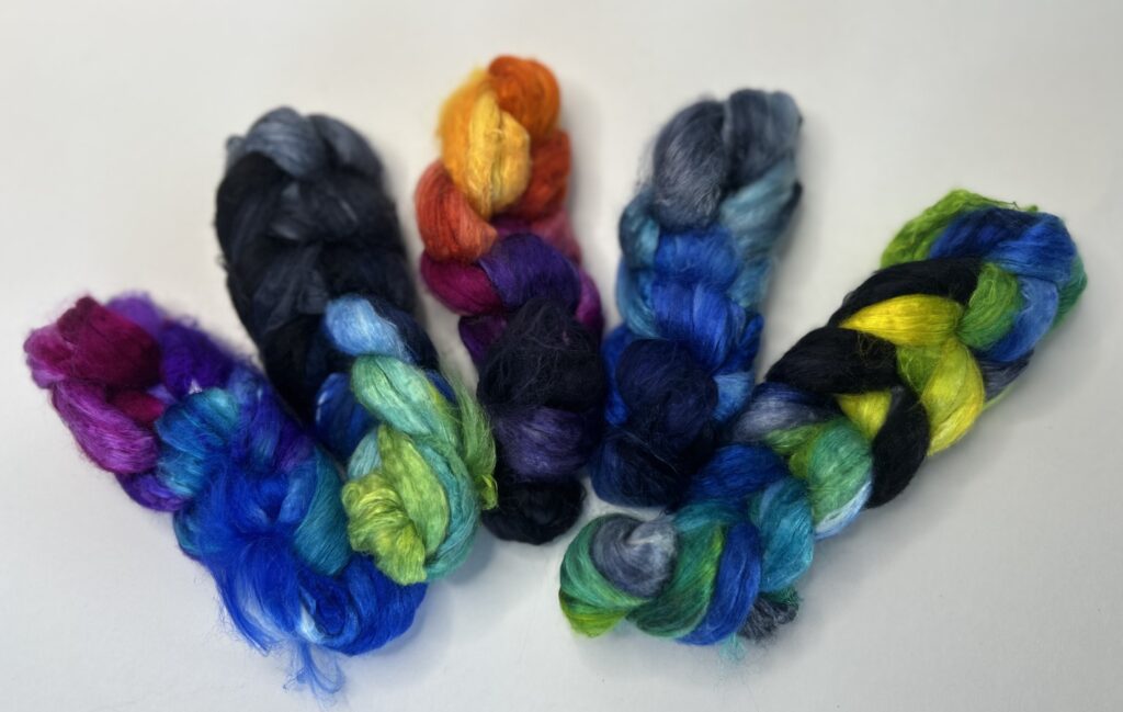 There has been quite a lot of dyeing going on too, mostly silk hankies and silk top as I try to keep up with demand. These plaits will be added to my Etsy shop over the next few days.