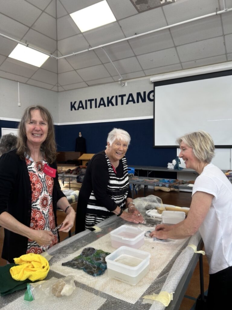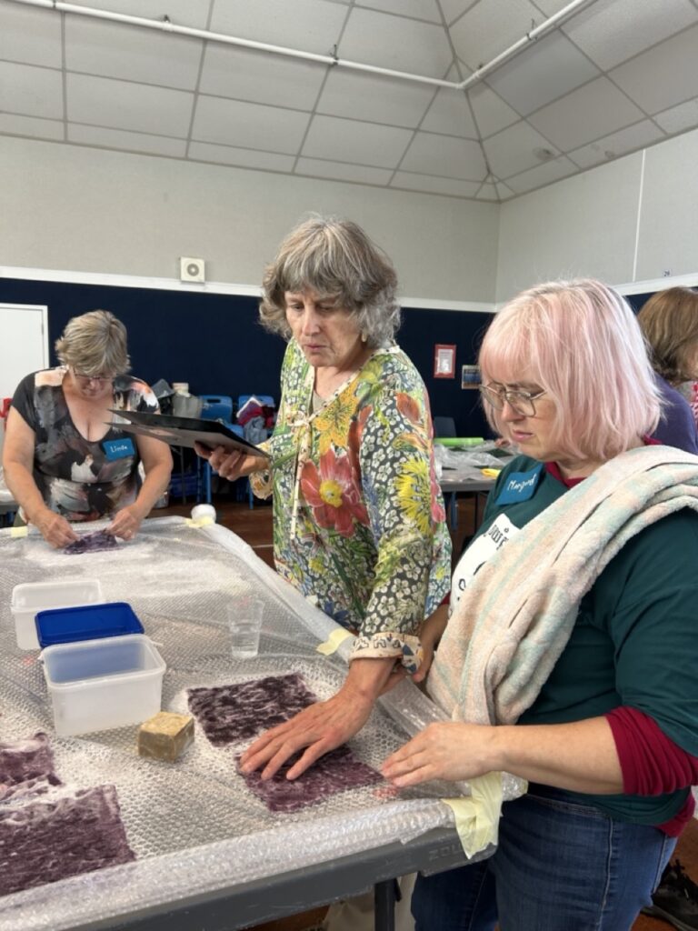 Christine Roxburgh and Jenny Forrester (our very talented and incredibly hard-working organisers) put together an amazing, fun-packed program over the 4 days we had together. At almost any given moment there were 3 to 4 different classes or talks taking place and if that wasn’t enough, there was a room full of traders selling all manner of fibres, fabrics and felting equipment and a fabulous felt exhibition to visit. They REALLY crammed a lot in to the 4 days!