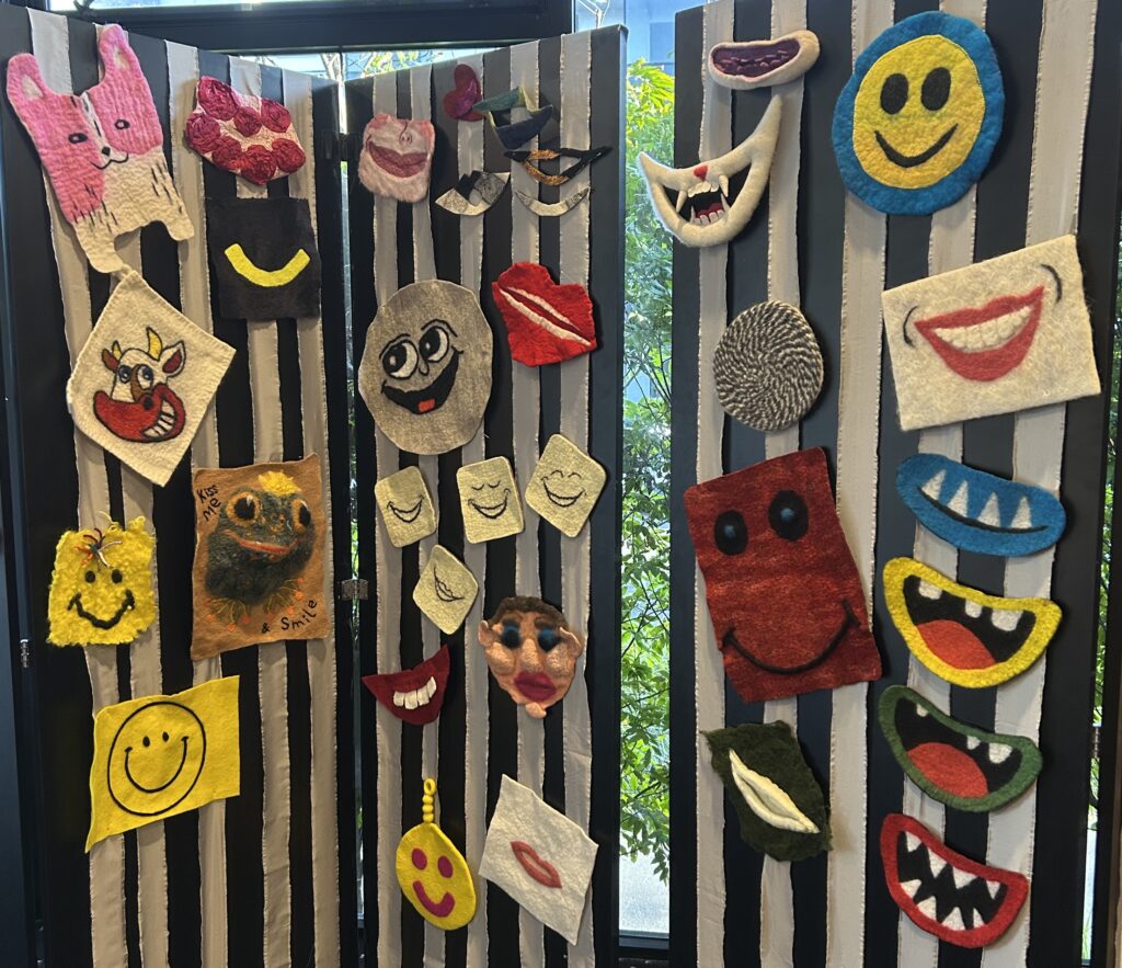 Before we arrived we were invited to “bring your smile”, a common refrain for anyone attending a social event but this time there was a twist…. We were to arrive with a smile and leave with a smile…. a felted smile! ๐
