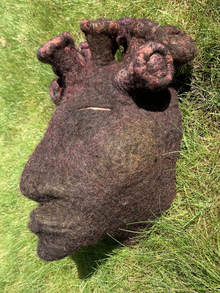 Those who know me, know my favourite felt practice is sculpted, 3 dimensional wet-felting. It seemed like a natural step to translate the self portrait into a series of 3D faces.