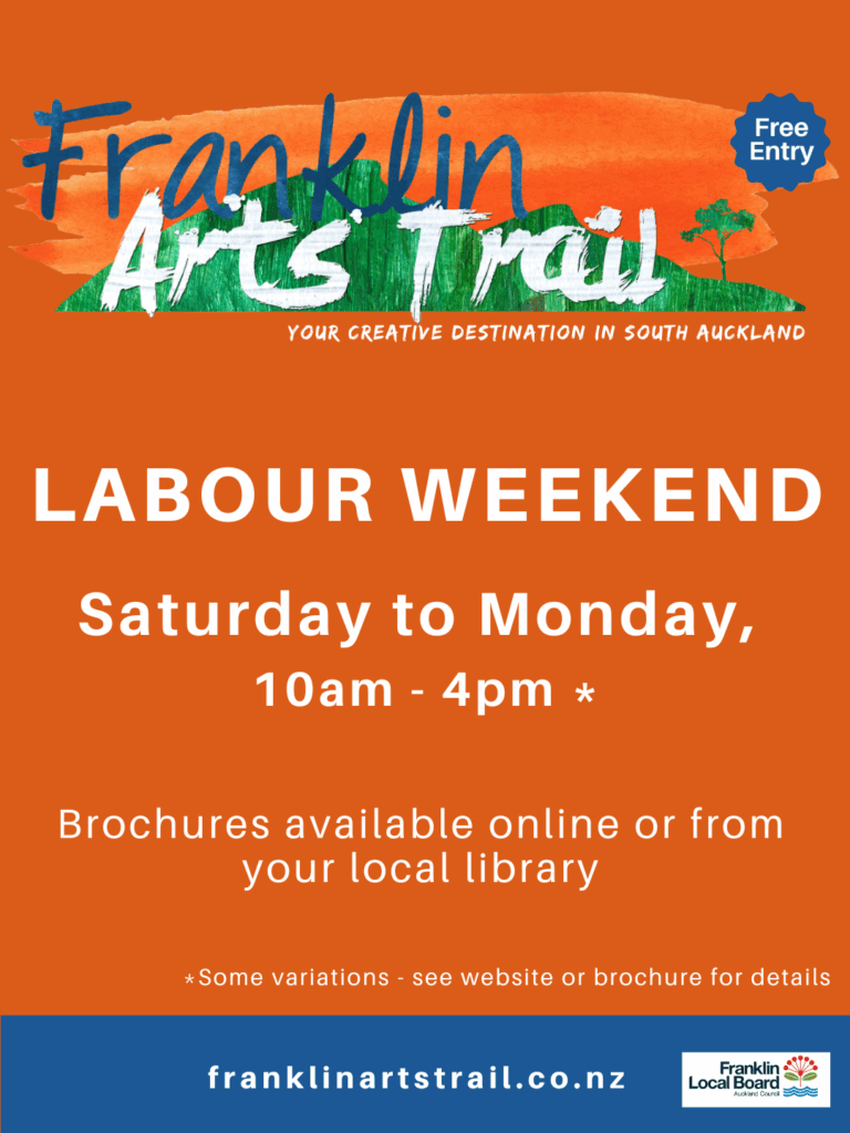 Franklin Arts Trail 10am – 4pm 25th – 27th October (Labour Weekend). Lots of amazing locals artists working across a wide range of disciplines, there truly is something for everyone! Come visit my new studio where I will have a range of finished felted and ceramic pieces for sale as well as my range of fibres and tools.