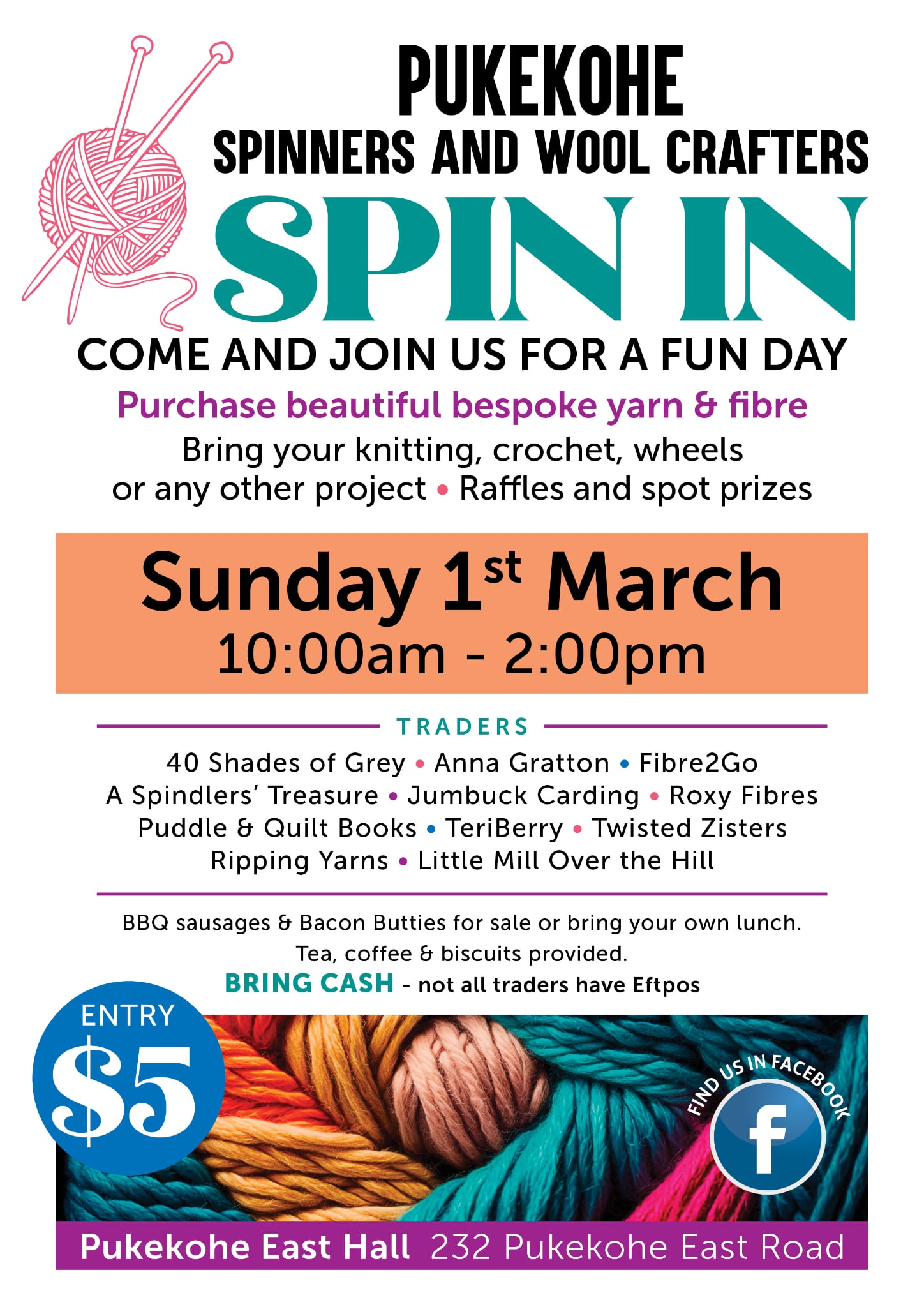 Pukekohe Spin-in – Sunday 1st March, 10am – 2pm at Pukekohe East Hall